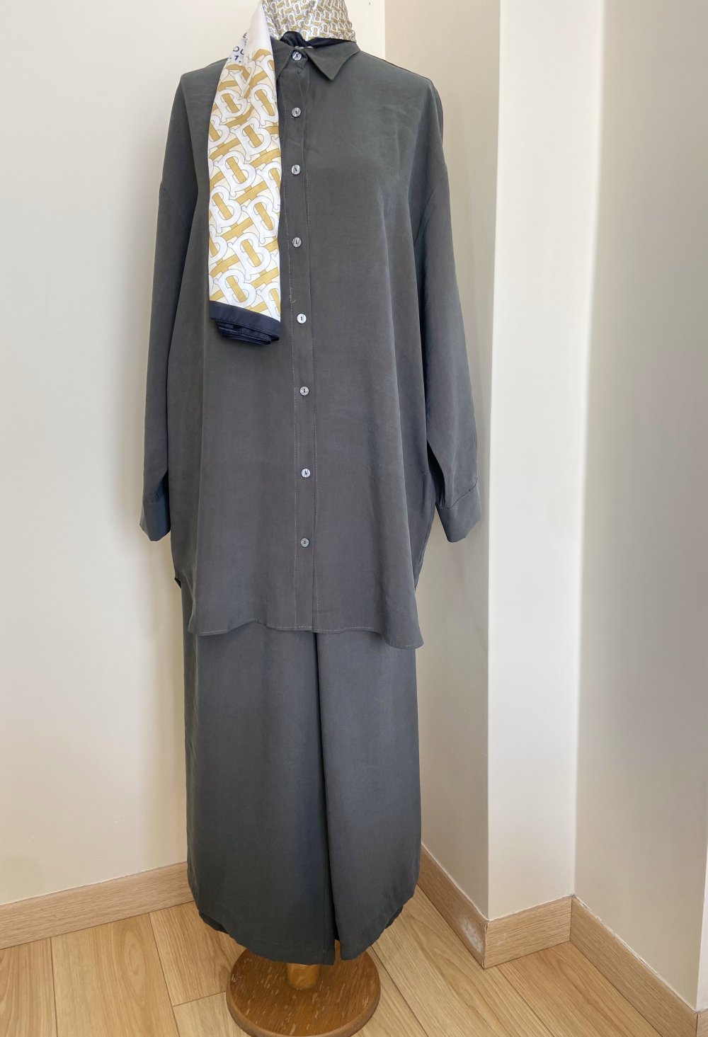 Bol kesimi ve yumuşak dokusu sayesinde gün boyu rahatça giyilebilecek bu takım, doğallığı ön planda tutanlar için ideal bir tercihtir. Şıklığı sneakers ayakkabılarla tamamlayarak casual bir stil yakalayabilirsiniz.
